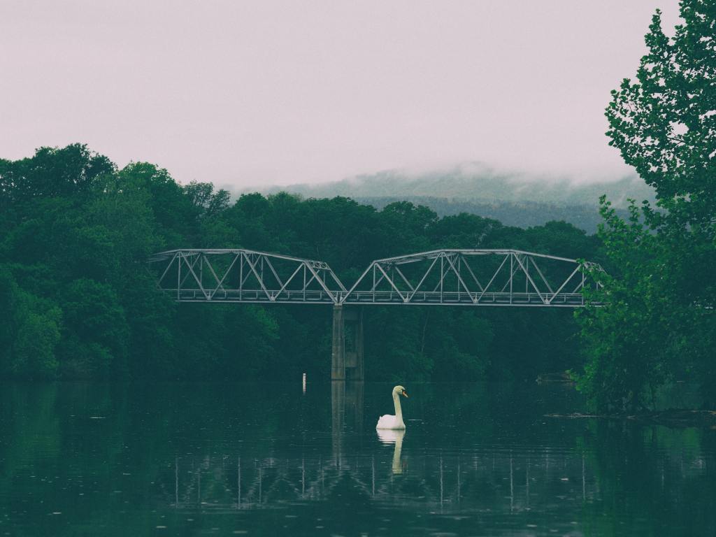Swan on the Shenandoah River near Edinburg, Virginia, USA. I crossed this historic 1942 river bridge daily for most of the 18 years I lived in Shenandoah County. Two of the four spans are hidden by the trees. Photo by Aaron Burden from Unsplash.Swan on the Shenandoah River. Photo by Aaron Burden from Unsplash.