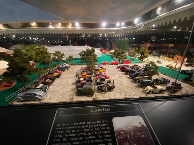 A scene from the Howard Brothers Model Circus, which recreates an early 20th century circus. Howard Tibbals, a retired circus performer, created the 44,000-piece display by hand over a fifty-year period. The display occupies 3,800 square feet in the museum.