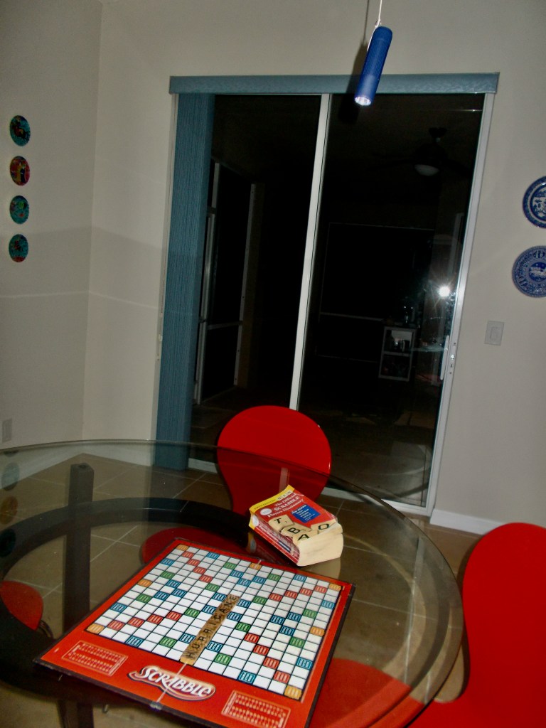Occasionally, we took time out to play a game of Scrabble. A couple of times, I even won! At night, we played by the light of a tiny flashlight hung from the ceiling fan with a piece of string.