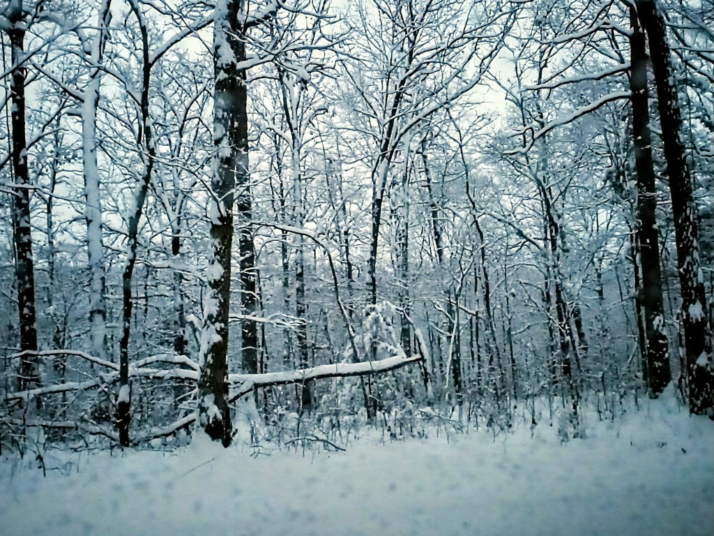 New fallen Snow in the forest. Photo used by permission of the photographer.My daughters, Katey and Ellen, and their dogs. Vibes and Rez. Photo by Katey Batavia.Here today, gone tomorrow! A cute snowman made by Ellen and Katey.