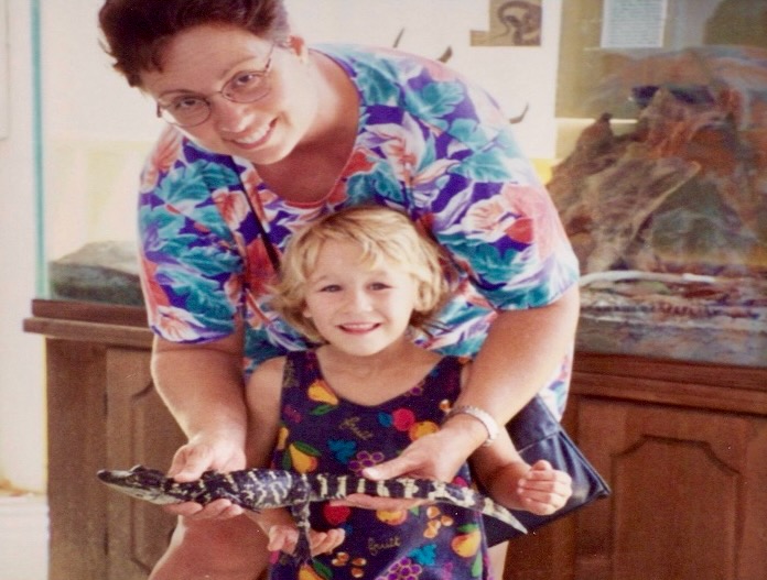 Cheryl, Katey, (about Age 5), and a Baby Alligator. Florida Everglades