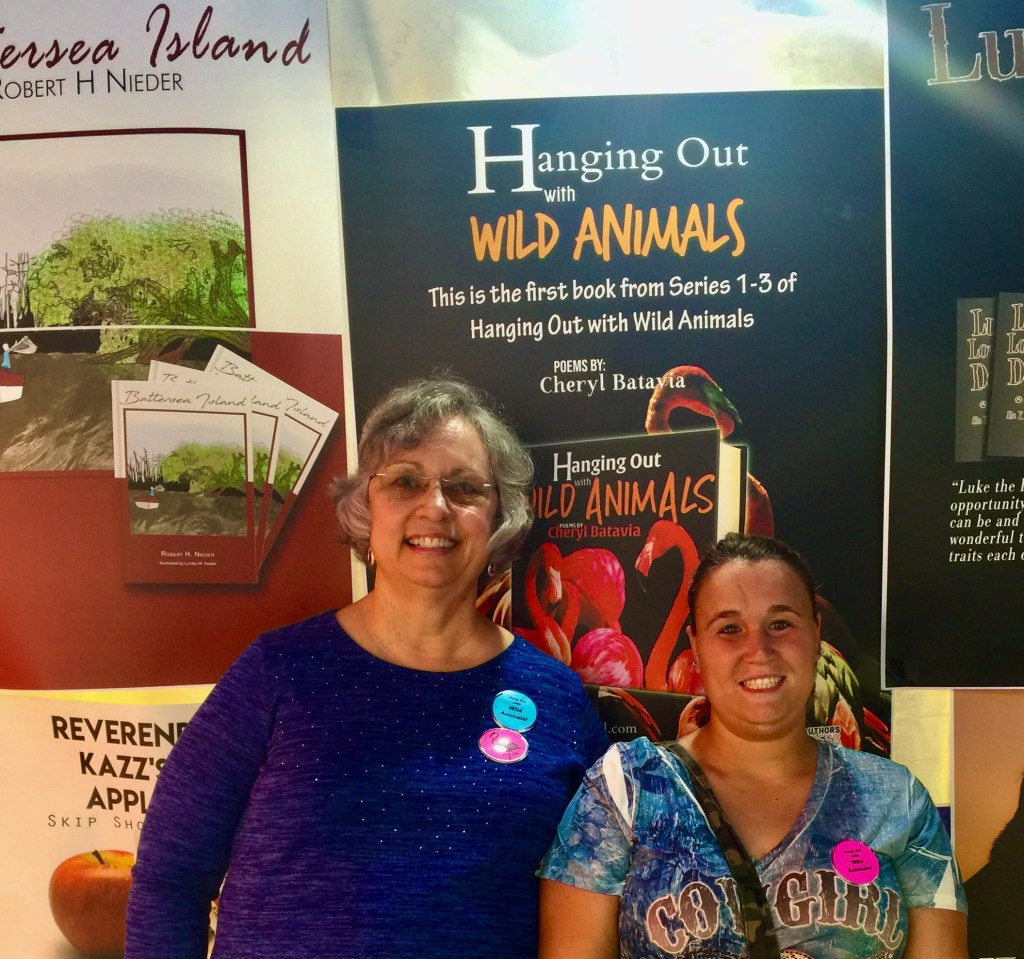 Cheryl and Katey Batavia at the Miami Book Fair. The Hanging Out with Wild Animals books were on exhibit there.
