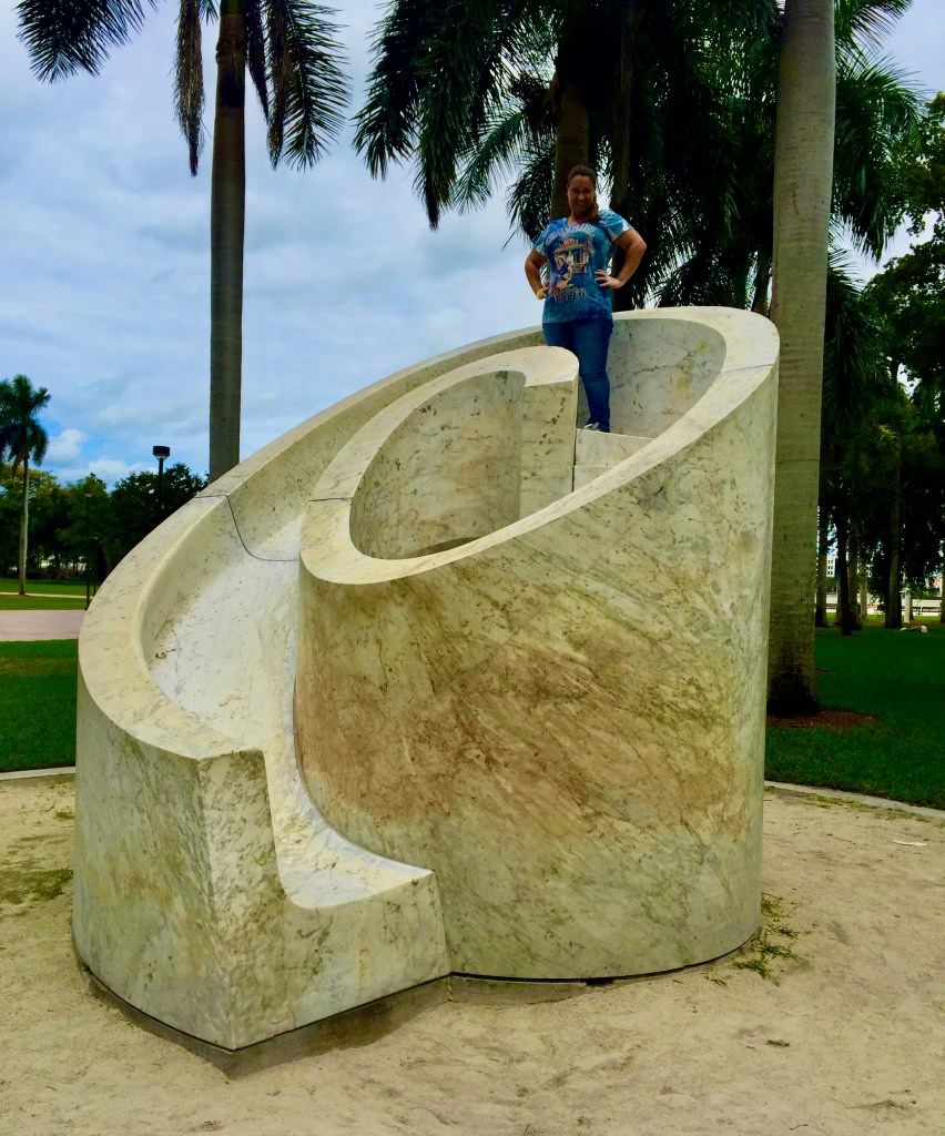 Katey on the white marble slide near Bayside where she used to play as a child. She would slide over and over again until her face was flushed, and we made her take a rest. It looks as if a lot of children have loved it since then!